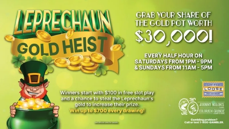 Winners start with $100 Free Slot Play and a chance to steal the Leprechaun’s gold to increase their prize— win up to $700 each drawing!