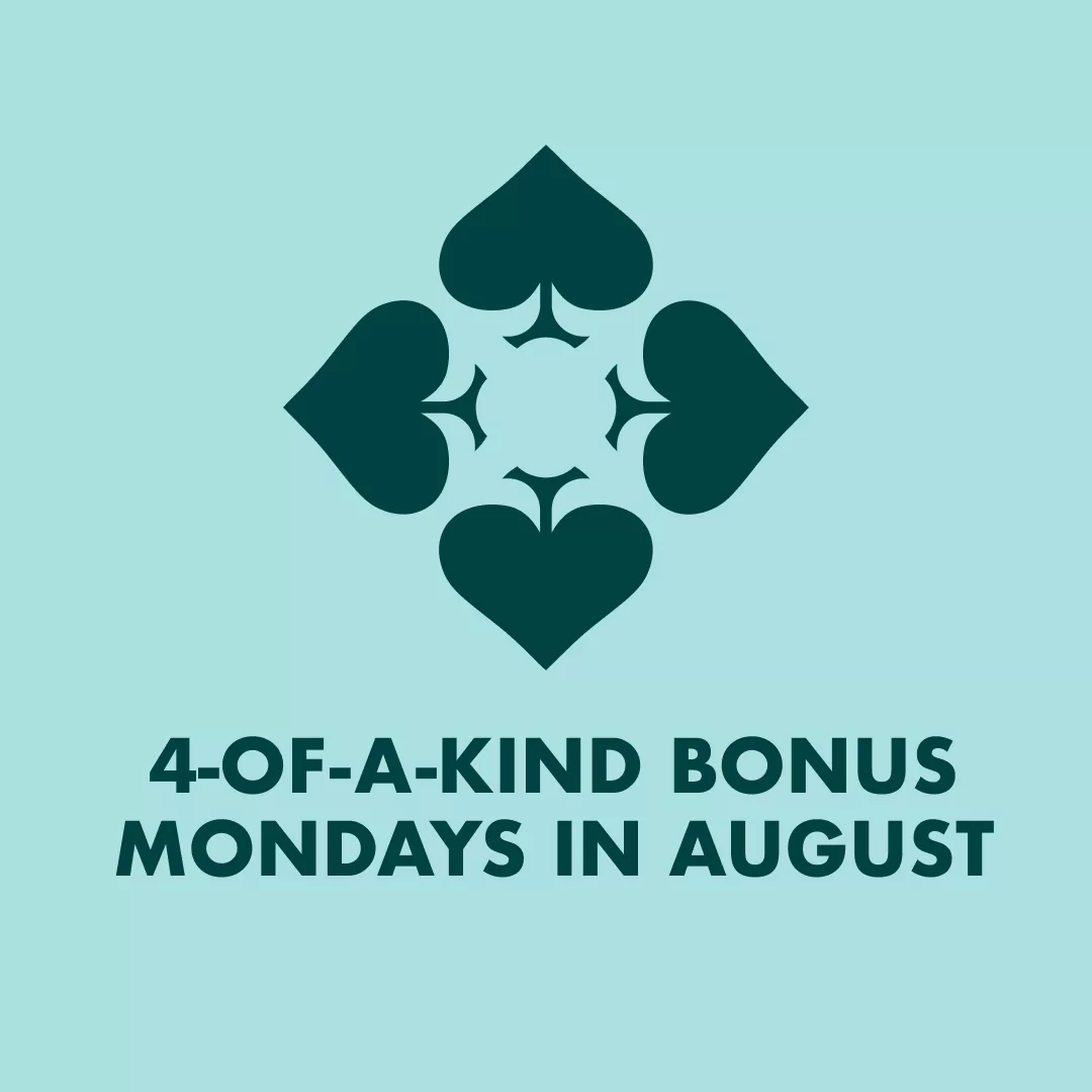 Slot Play: 4-of-a-Kind Bonus Mondays in August Hit 4-4 of a Kind and Receive a $5 Free Slot Play Bonus. + Add to Google Calendar + iCal / Outlook export The event is finished. Date Aug 25 2025 Expired! Time All Day Share this event